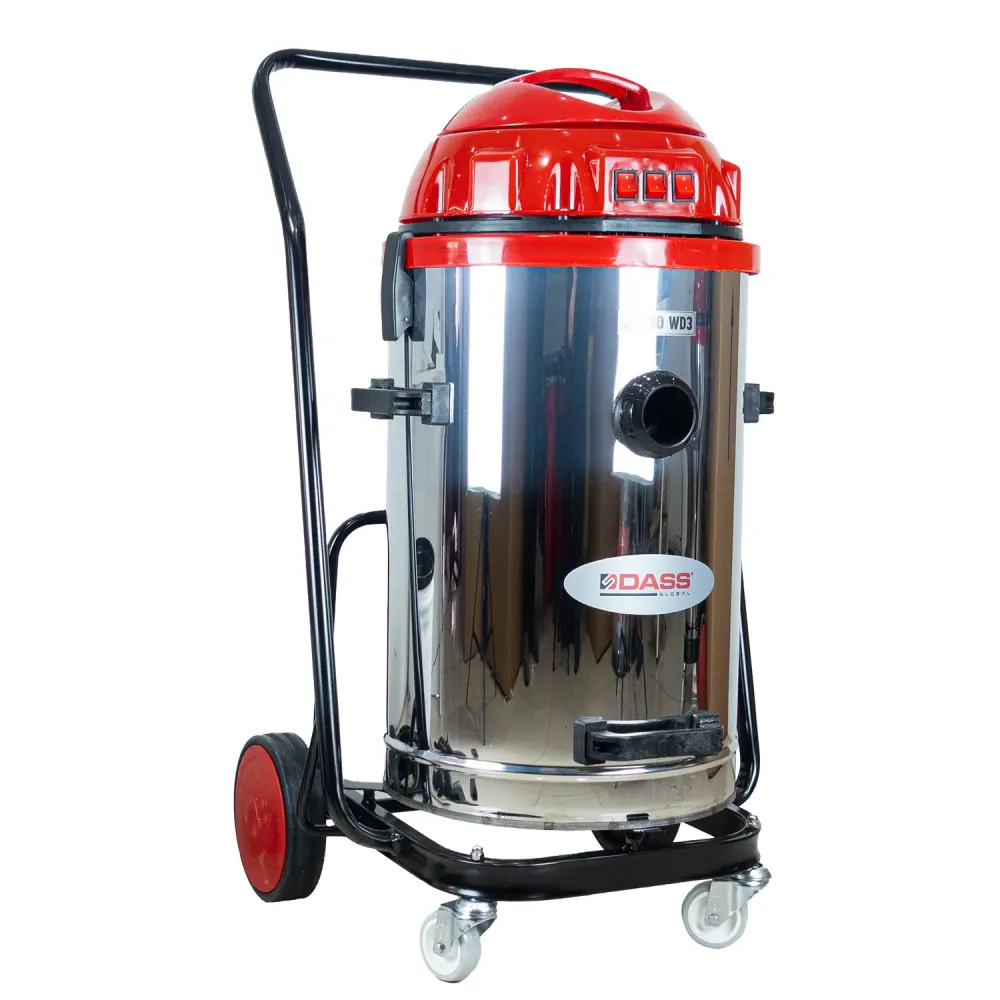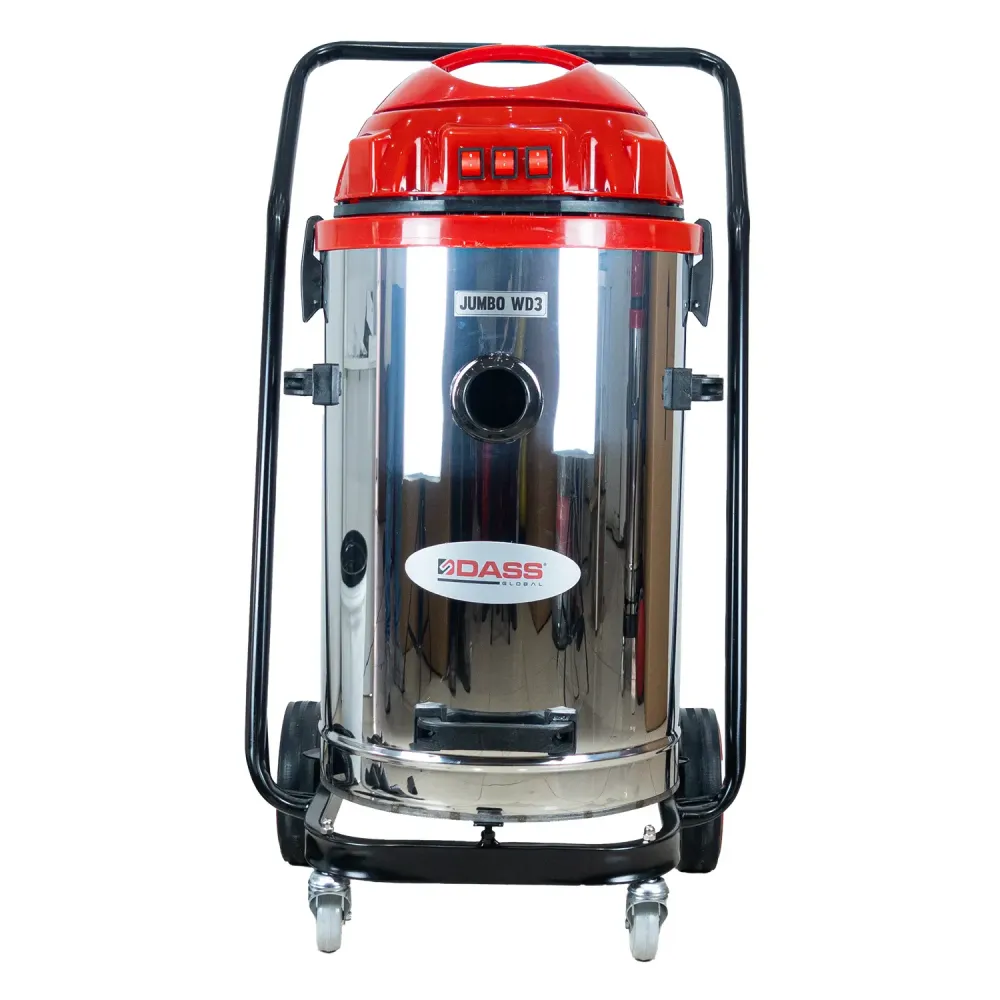 Dass Jumbo WD3, talaşlar, karton parçaları, tekstil parçaları, küçük çakıl ve kum gibi katı partiküllerin kolayca vakumlanmasını sağlar ve özel toz filtreleri sayesinde tozları da kolayca temizler.Makinamızın üst gövdesi, alt gövdeye plastik mandal ile bağlanarak korozyona karşı korunur ve paslanma riski en aza indirilir. Yanıcı, patlayıcı solvent, asit gibi maddeler haricinde sıvıları vakumlayabilme özelliği de Dass Jumbo WD3’ün bir diğer özelliğidir. 75 litrelik çelik kazan haznesi ile paslanmaz çelik gövdesi sayesinde, uzun ömürlü ve dayanıklı bir kullanım sunar.